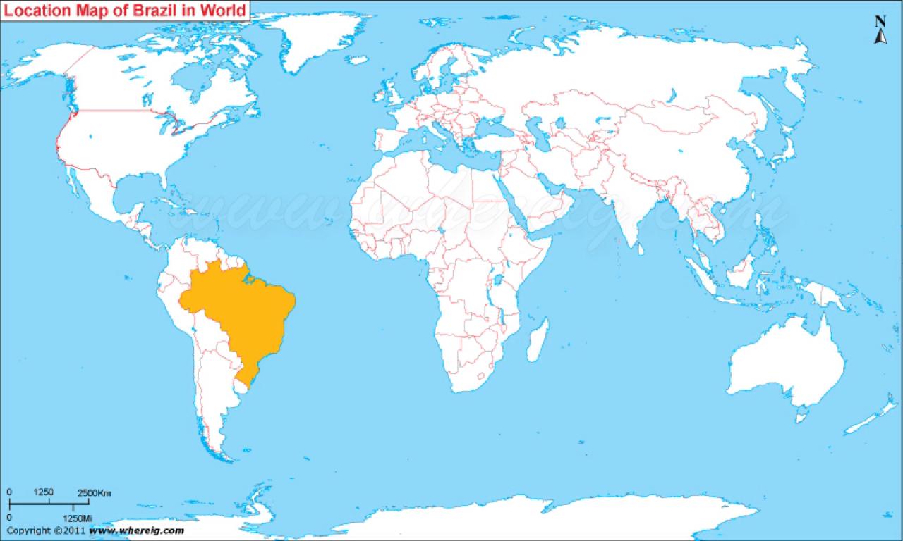 البرازيل الموقع على خريطة العالم ،